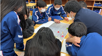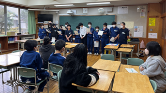 福祉体験学習に向けて学びを深めてきた1年生。いよいよ今日が高齢者福祉施設の訪問…!という時に、インフルエンザが出始めたこともあり、訪問を見合わせることとなりました。いろいろ計画を進めてきた1年生はこのままでは終わりません。お互いに立場を変えて利用者さん目線を意識しながら、自分たちが計画したことを発表し、共有し合っていました。その様子をお届けします。