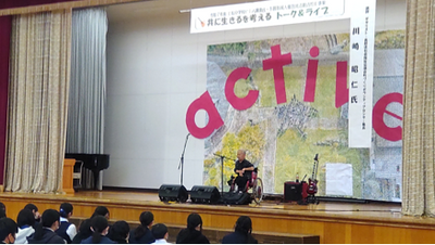 11月20日(木)の授業参観日には、「人権講演会」も実施しました。講師はギタリストの川崎 昭仁さん。