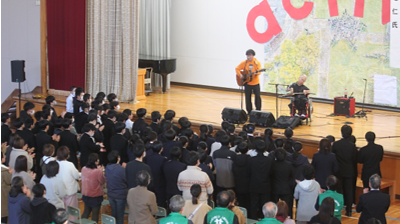 体育館がコンサート会場と化した素晴らしいひと時でした。きっと生徒たちの心の中に人権の「タネ」が蒔かれたものと確信します。