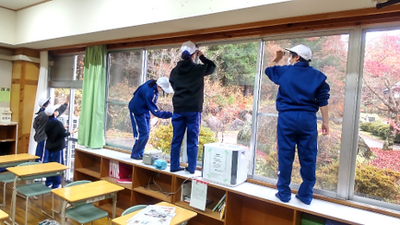 11月25日(火)の1校時に全校作業を実施しました。普段の清掃では手が入りきらない校舎内外の環境整備が目的です。