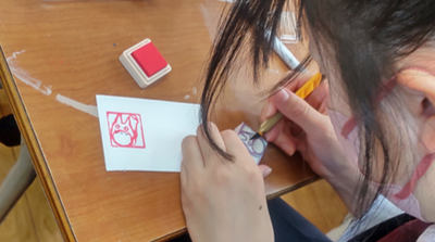 思いが込められたスタンプ。(国語科とコラボして、冬休みの書き初めに押そうと考えているようです!)