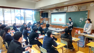 入試を終え、特別日課に入った3年生。そんな3年生に対し、3月12日(木)に、町の保健師さん方による「SOSの出し方」に関する授業が行われました。