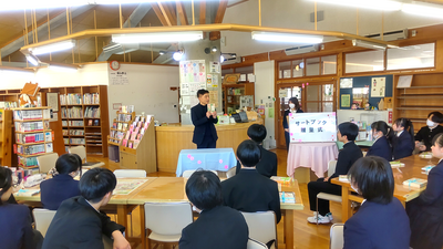 町の教育指導主事の先生から、ご自身の読書体験に基づいた読書への親しみ方についてお話いただきました。