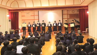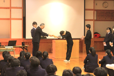 最初に、3学期にいただいた賞状の伝達を行いました。