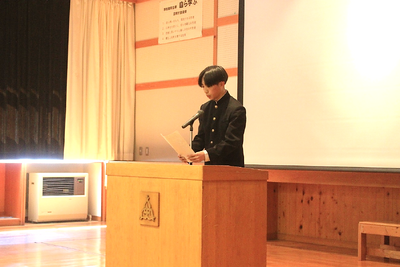 2年代表生徒が、3学期の振り返りと来年度への抱負を堂々と発表しました。