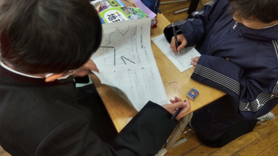 根拠となる資料を友だちと関わりながら確認し整理していました。多様な資料を正しく読み解き、そこから事実や傾向をとらえ自分の言葉で表現する力は、思考力・判断力・表現力を育む上でカギとなります。このような学びが習慣化するといいですね。