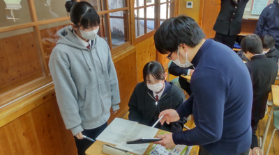 「冬の読書旬間」最終日となる12月12日(金)の朝読書の時間に、職員による本の紹介を行いました。紹介される本の一覧から1冊を選び、その本が紹介される場所へ生徒が移動するというシステム。「○○先生の本だったんだ!」