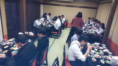 修学旅行も3日目、最終日を迎えました。宿舎での最後の食事。毎回おいしい食事を堪能しました。