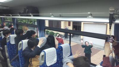 バスに乗車した後も、スタッフの方々が見送ってくださいました。