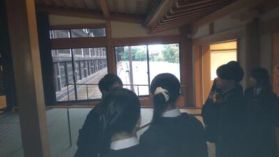 内部を見学した後は外に出て、「うぐいす張り」の仕組みを説明いただきました。