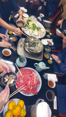 牛肉のしゃぶしゃぶとおかわり自由の新米コシヒカリで1日の疲れをとるとともに、明日へのエネルギーを蓄えた生徒たちでした。