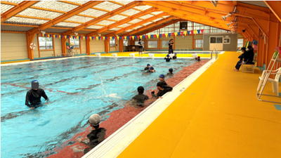 学校のプールの老朽化に伴い、本年度から体育のプール学習を町の『B&Gプール』で行うことになりました。室内プールなので天候を気にすることなく、本年度は9月末の総発を終えて落ち着いたところでプール学習をすることとしました。