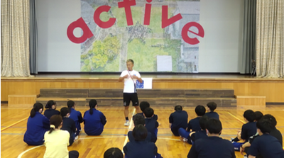 体を動かした後は、教室でNOBUさんのこれまでの山あり谷ありの歩みをお話いただきました。どんどん話に引き込まれていく生徒たち。