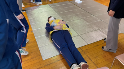その後、保健師さんにも説明いただきながら、赤ちゃん人形を使っただっこの練習や妊婦の体験をしました。