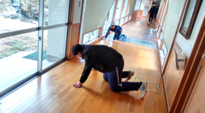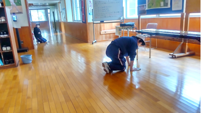 学期末清掃 投稿: 上松中 (08:00) 先週11日(木)から2学期の学期末清掃が始まっています。開始前に全校で黙想をして、心を落ち着かせます。 各分担場所での取組の姿から― 校舎を磨く姿に心が洗われます。
