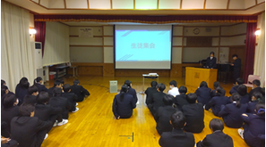 1月15日(木)に新体制での生徒会がスタートしました。最初に全校で気持ちをそろえました。