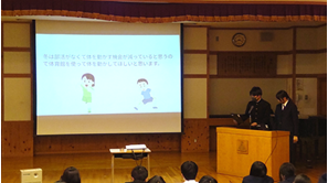 続いて、正副議長の紹介と、いくつかの委員会から日常生活に関わる確認事項等を全校で周知しました。